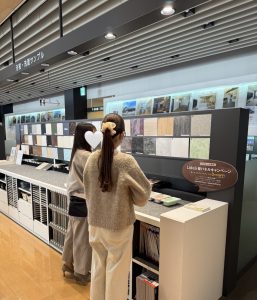実際のお客様と同じ流れでキッチンや洗面台、お風呂やトイレなどの色や種類を一つ一つ選びながら見学をさせていただきました。